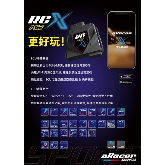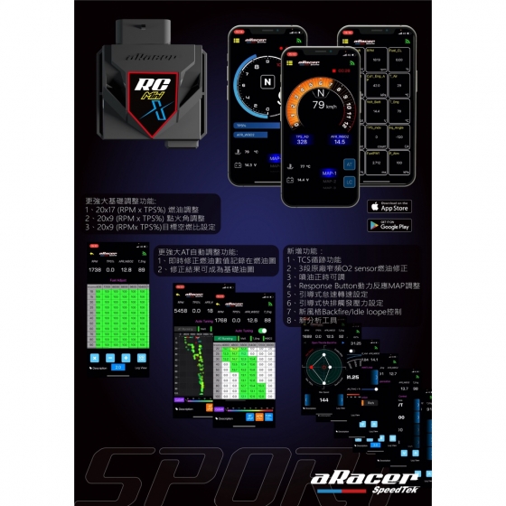 (1) 全新設計APP “aRacer X Tune“,功能更強大,但使用更簡單、人性化